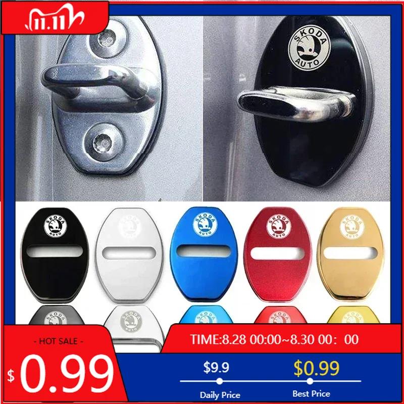 Car Sticker Car Door Lock Cover for SKODA Emblem Octavia Superb Kodiaq Fabia Rapid Spaceback Karoq Yeti Kamiq Metal Sticker Badg
