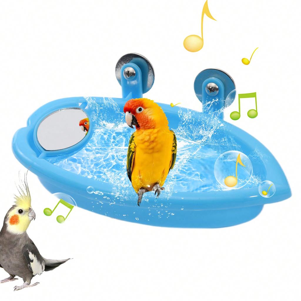 1 Pc Blue Bird Bath Bowl with Mirror, Detachable, Tiger Lily & Parrot Pattern Bathtub, Suitable for Food & Water, Can Be Used As Bird Nest/Cage