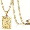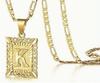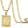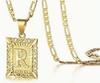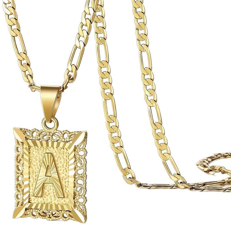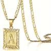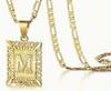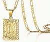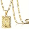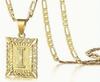 Initial Letter Pendant Necklace for Men Women 14K Gold Plated Square Necklace 26 Letters Long Chain Necklace GZW