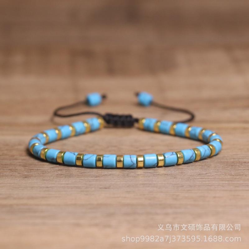Turquoise Heishi Bead Bracelet – Gold Accent Adjustable Boho Jewelry, Spiritual Protection Gift for Women