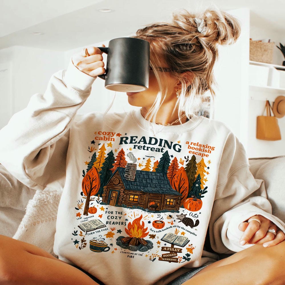 Women Cozy Cabin Reading Retreat Comfort Unisex Top Book Lover Vintage Dark Academia Autumn Cozy Readers Sublimation Sweatshirt