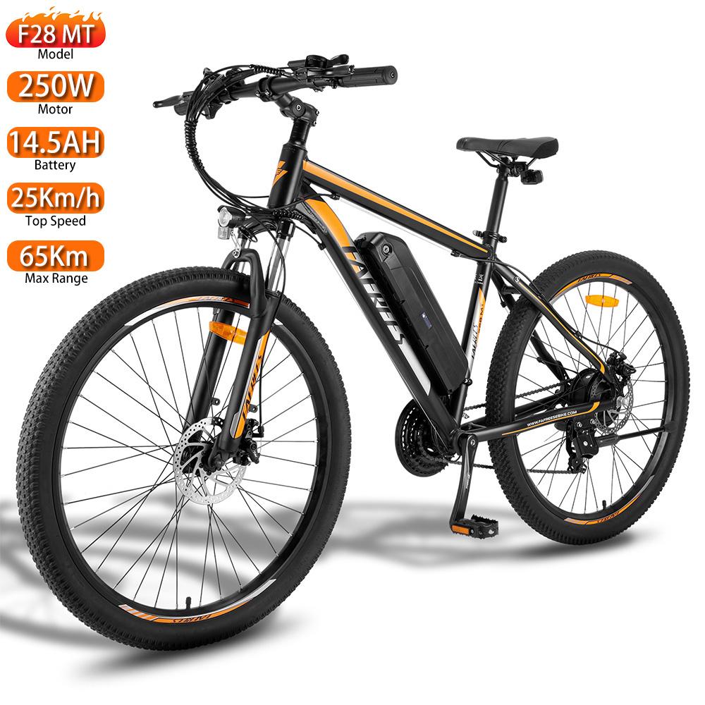 Package Contents: 1*F28 MT Electric Bicycle 1*Charger 1*Tool Kit 1*User Manual 1*Gift Box (containing 1*Inner Tube, 2*Valve Caps, 4*Spokes, 2*Wheel Reflectors, 2*Battery Fuse, 2*Brake Pads, 1*Keychain)