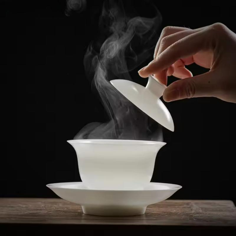 Handmade Liuli Glazed Gaiwan Chinese Tea Set Porcelain Lidded Bowl for Gongfu Tea Ceremony Home Use