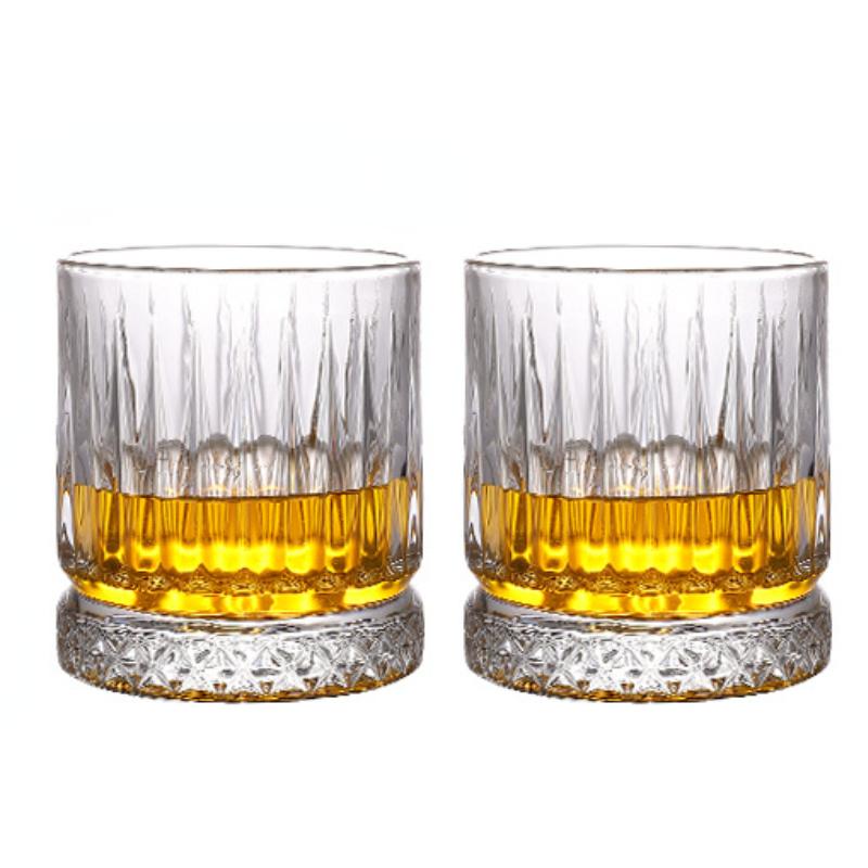 2pcs Set 13OZ Whiskey Glasses Tumbler Diamond Carved Wine Cups Crystal Barware Light Luxury Beer Mug Transparent Cocktail Glass
