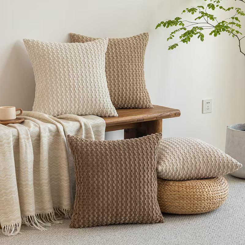 Bohemian Corduroy Bubble Bead Throw Pillow Cover