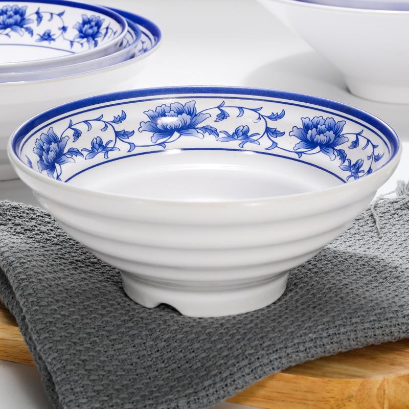 Blue & White Melamine Noodle Bowl: Imitation Porcelain Tableware for Ramen, Soup, Wonton, or Beef Noodles in Noodle Shops