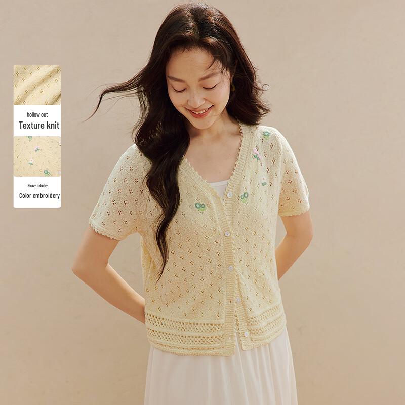 INMAN Women's French V-Neck Embroidered Knit Cardigan