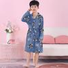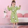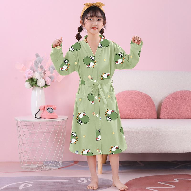 This charming long-sleeve pajama robe is crafted from high-quality combed cotton, ensuring a soft and comfortable feel for middle and big girls. Designed specifically for spring and summer, it offers a breathable and cozy fit for warmer nights. The robe features a cute and youthful design, making it a delightful addition to any girl's sleepwear collection. Its long sleeves provide extra warmth, while the lightweight cotton material ensures optimal comfort throughout the night. Perfect for bedtime, lounging, or after-bath relaxation, this robe combines style and comfort effortlessly.
