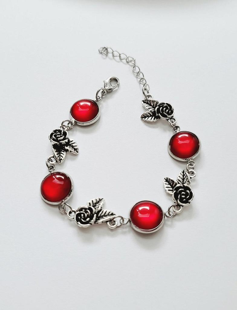 Red Ruby Rose Pendant Bracelet - Cute Floral Valentine's Day Jewelry