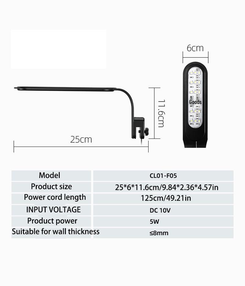 Ultra-Thin 5W Waterproof LED Fish Tank Light with 18 LEDs, 7 Color Options