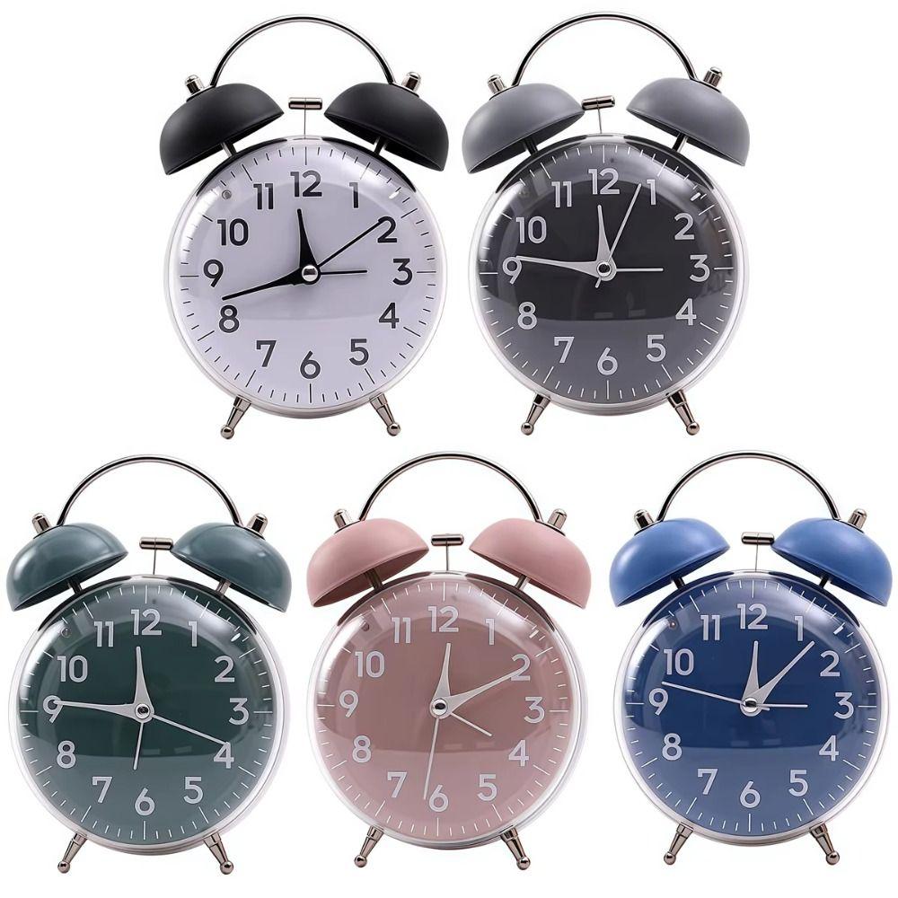 Loud Alarm Twin Bell Clock Soft Night Light Bedside Wake-up Clock Mechanical Clock Dormitory