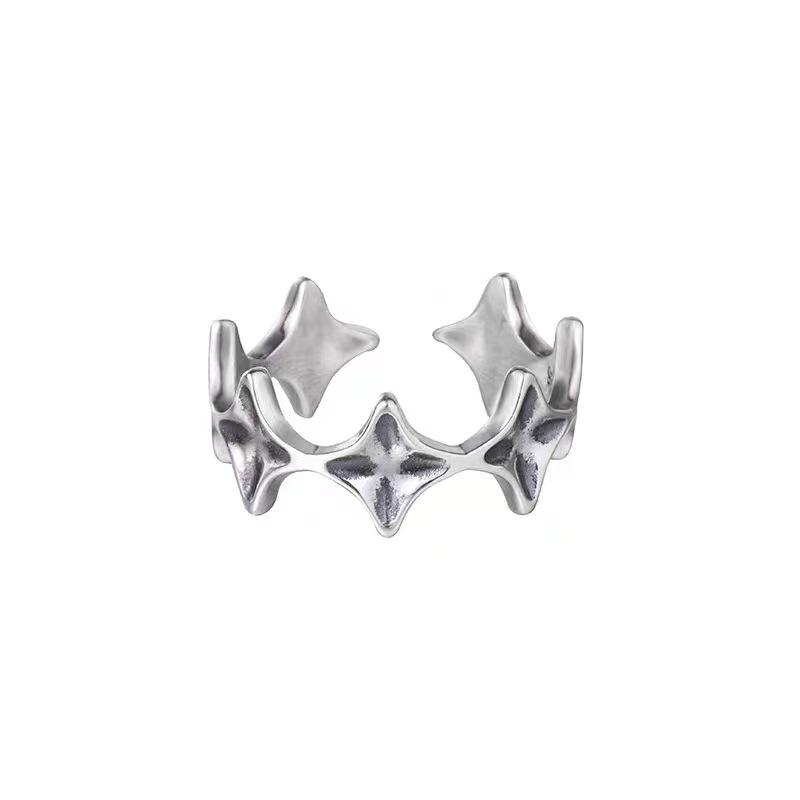 Tide Little White 925 Sterling Silver Starburst Open Ring - Women's Cool, Fashionable, and Unique Style.