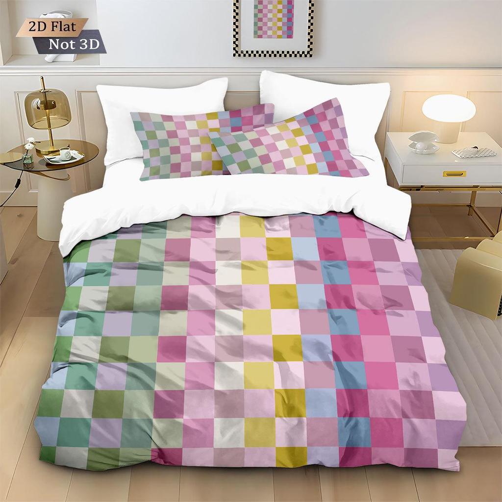 Geometric Colorful Checkerboard 3D Printed Brushed Duvet Cover Set