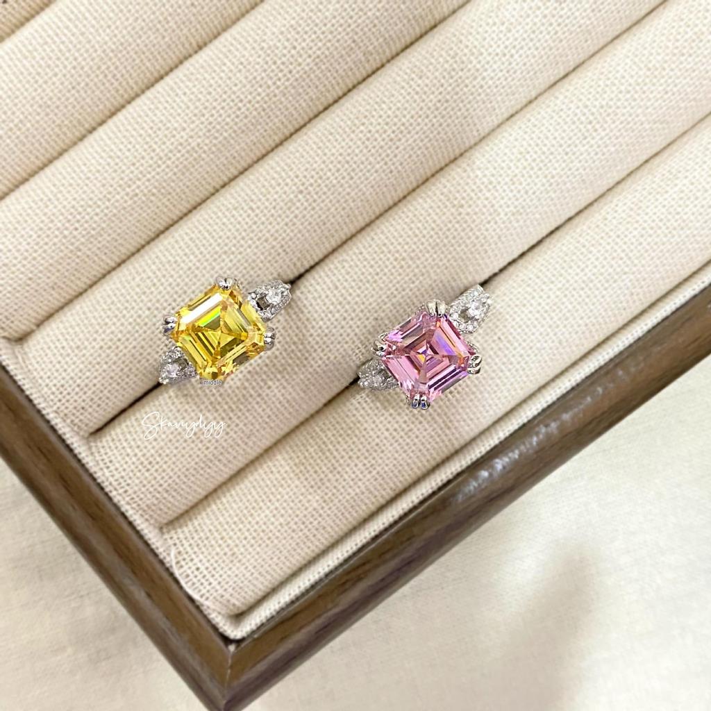 Elegant Yellow Diamond Ring with Square Pink Open Design