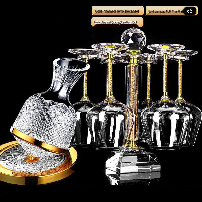 Luxury Gold Diamond Rotating Crystal Wine Glass Set