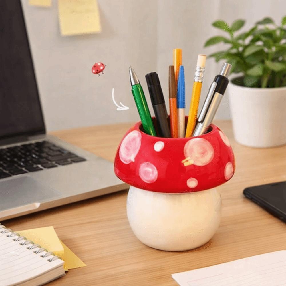 Creative Decoration Mushroom Decorative Piece Pink and Red Makeup Brush Holder Makeup Organization