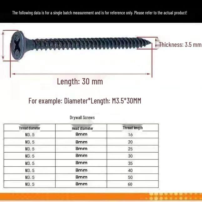 Mixed Pack Black Drywall Screws: High-Strength, Long, Hardened, Light Steel Keel, Bulk Cross
