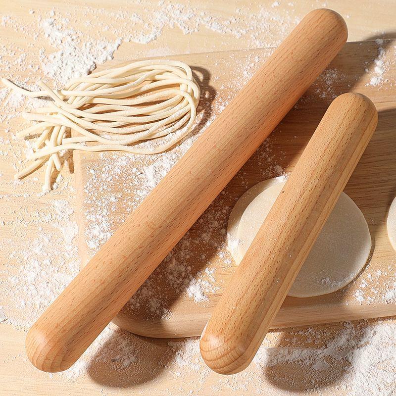 Beech Wood Rolling Pin for Dough and Dumplings - Solid Wood Baking Tool with Round Head
