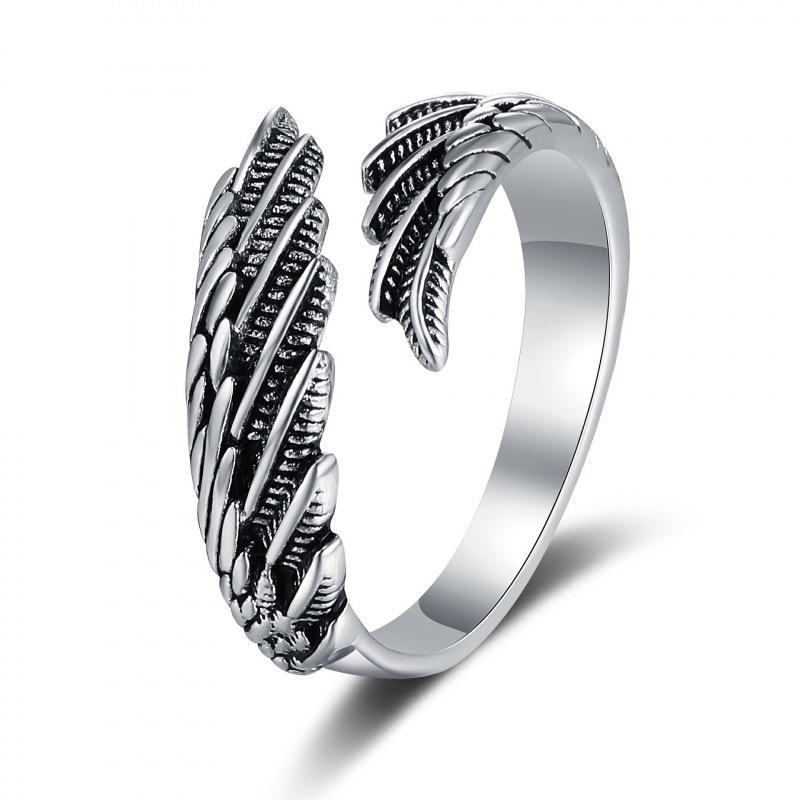 Unisex Retro Sterling Silver Angel Wings Ring - Stylish, Trendy, Light Luxury, Creative Niche Design.