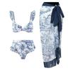 High-Waisted Push-Up Sheer Bikini Three-Piece Swimsuit Set with Long Skirt