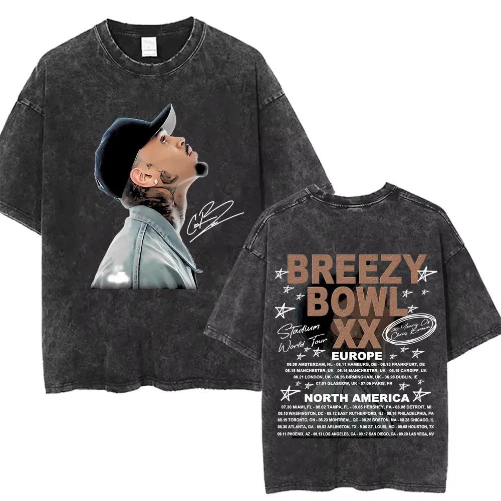 Vintage Washed Chris Brown Graphic T-shirt Breezy Bowl XX Tour 2026 Merch T Shirts Men Women Hip Hop Fashion Oversized T-shirts