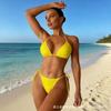 Solid Yellow Halter Triangle Bikini Set - Tie Side Thong SwimsuitCasual