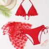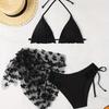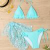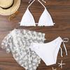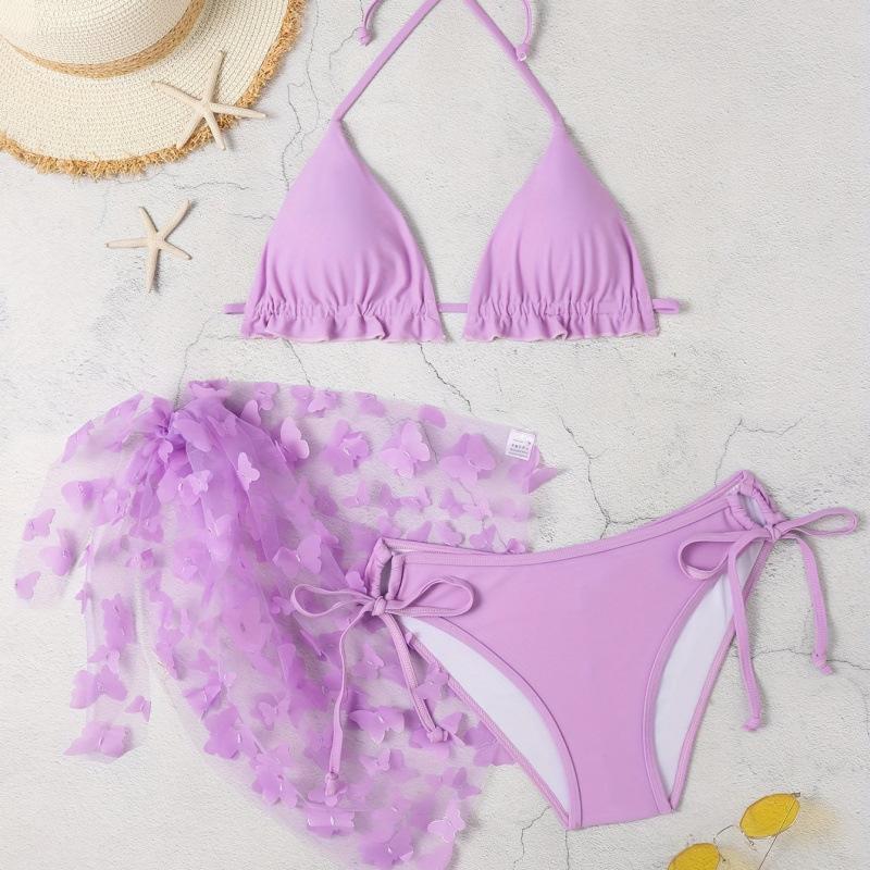 Women's Lavender Butterfly 3 Piece Bikini Set - Halter Ruffle Swimsuit with Beach Skirt