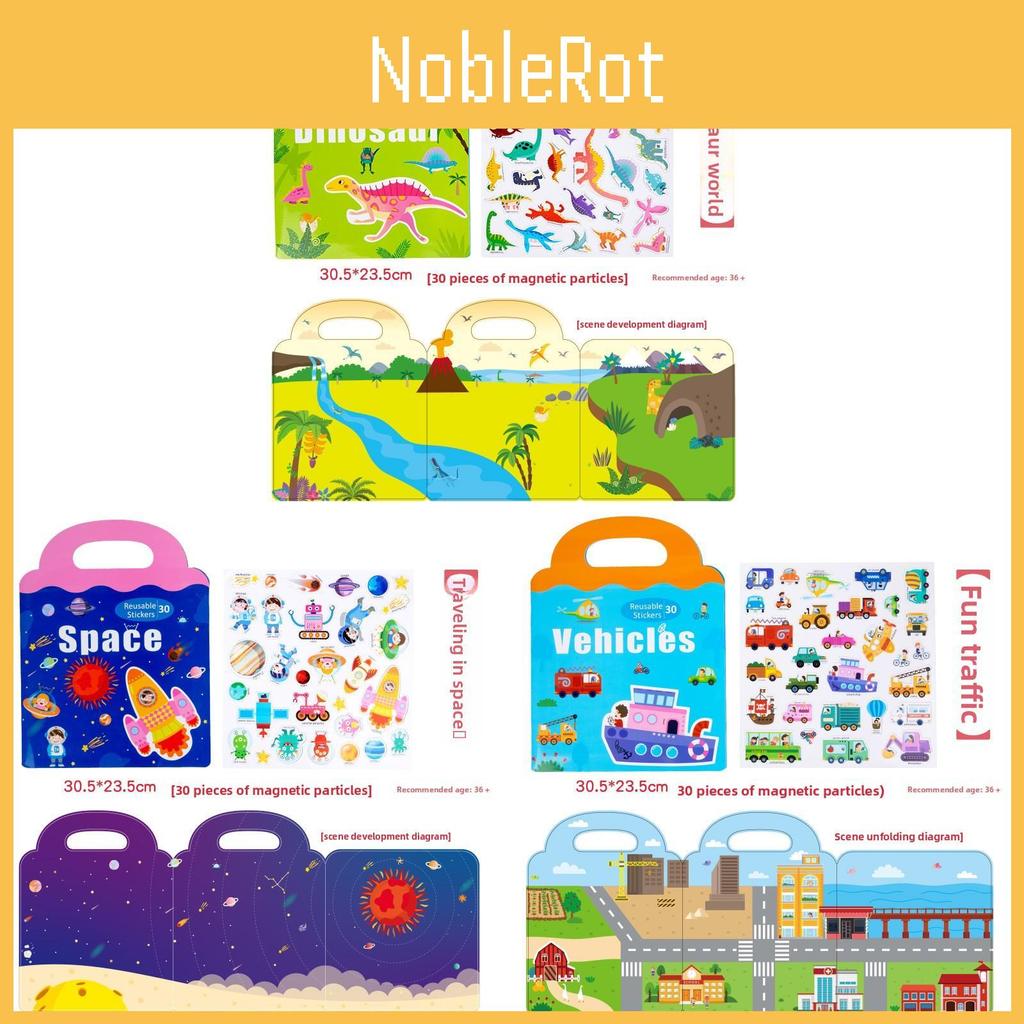 This magnetic DIY children's scene sticker book offers an engaging way to develop focus and fine motor skills. Made of durable paper, it measures 12 inches by 9.25 inches and includes vibrant themed scenes such as dinosaur world, space, and underwater adventures. The reusable magnetic pieces support quiet, independent play.