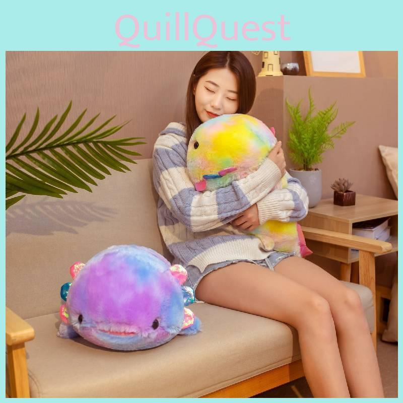 Designed in the likeness of the fascinating axolotl, a unique amphibian known for its enchanting appearance, this plush toy is a delightful representation of nature's wonder.Available in two vibrant colorssunny yellow and soothing purplethis plush toy is sure to capture the hearts of everyone who sees it.With its short plush fur, it offers a super-soft texture that enhances the cuddling experience, making it a favorite among plush toy enthusiasts.