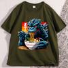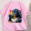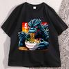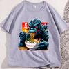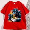 Funny Kaiju Eating Ramen Tshirt Japanese Monster Noodle Design T Shirt Anime Food Printed Tshirt Men Women Short Sleeve Tees
