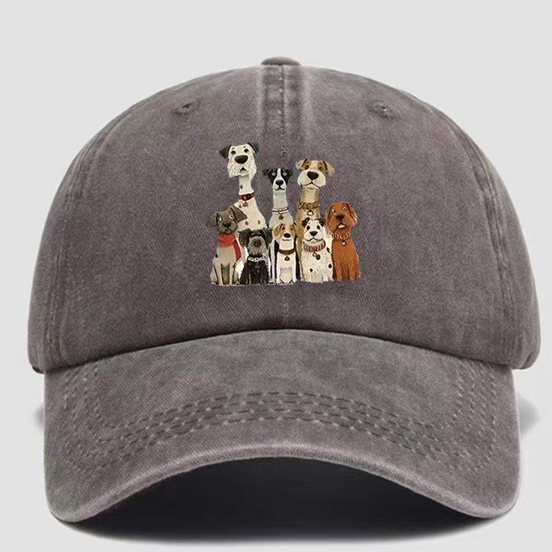 A set of dog-themed water-washed printed baseball caps, suitable for both Unisex and Women.
