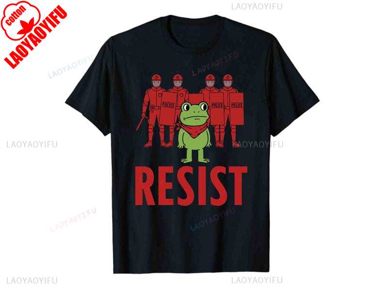 Portland 2025 Resist Frog for Men Women Protest Anti ICE Activist Political Shirt Letters Cartoons Printed Tshirt Tops Adult