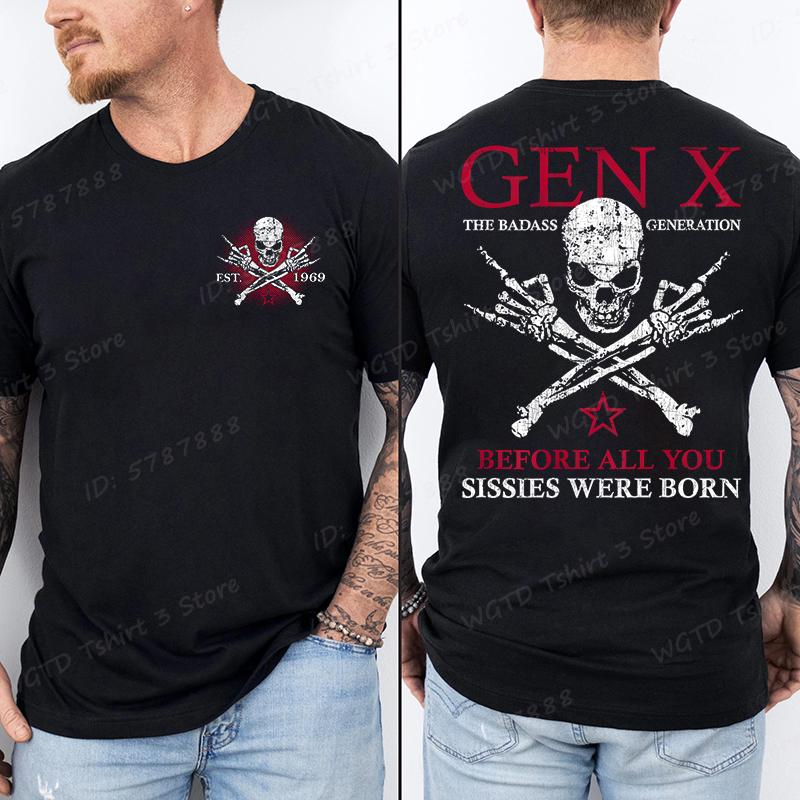 Cool Skull Gen X Before All You Sissie Were Born Tshirts Funny Generation X Tshirt Mens Street Casual Short Sleeve Tshirts