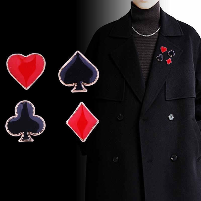 Harajuku Poker Series Card Brooch: Spade, Club, Diamond, Heart Metal Lapel Pin Accessory
