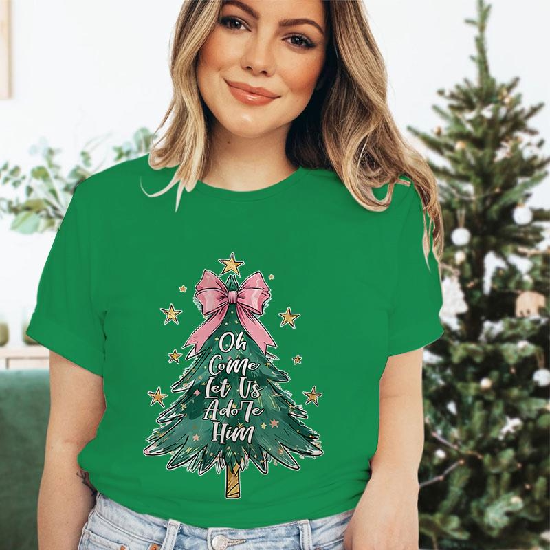 Merry Christmas Tree Design Tshirt Women Funny Festive Fashion Casual Green Tshirt Creative Xmas Tree Graphic Holiday Tops Tees