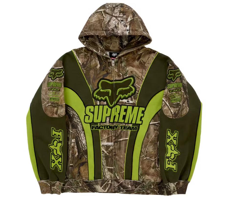 SUPREME Racing Cycling and Off-Road Hooded Zipper Sweatshirts with Printed Long Sleeves Green