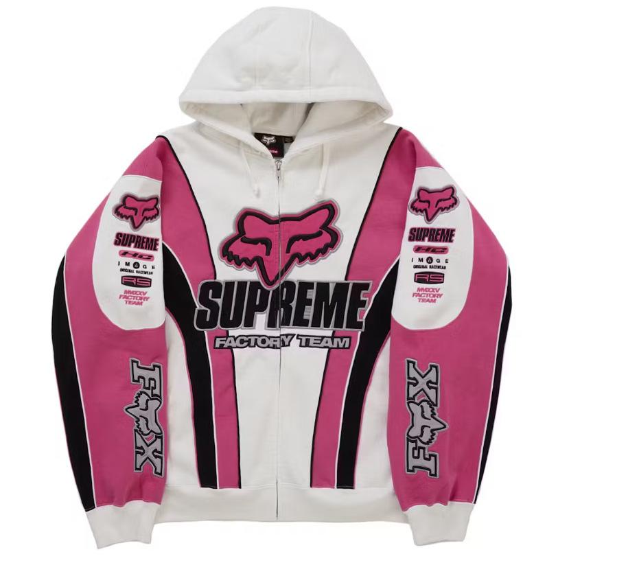 SUPREME Racing Cycling and Off-Road Hooded Zipper Sweatshirts with Printed Long Sleeves Pink