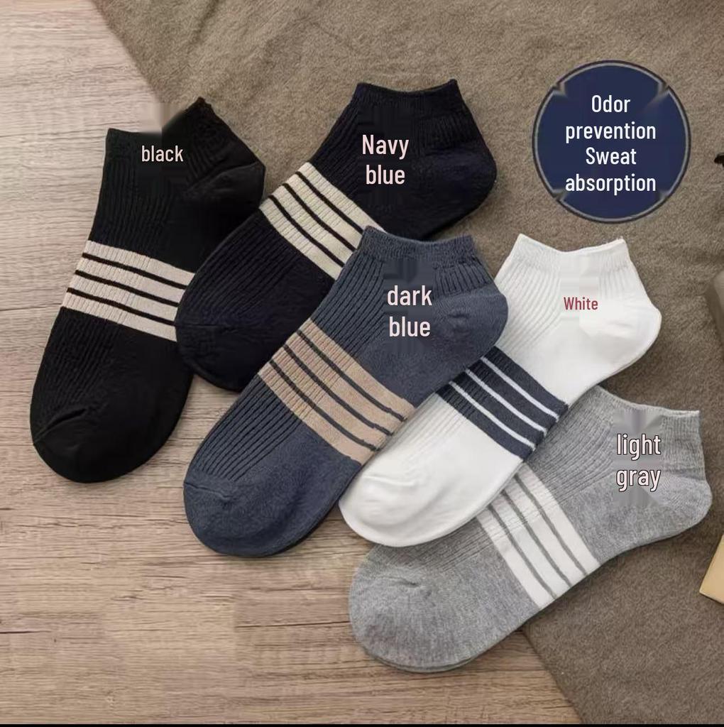 Versatile Men's Striped Crew Socks: Odor-Resistant, Sweat-Absorbing, Breathable - Ideal for Spring/Summer.