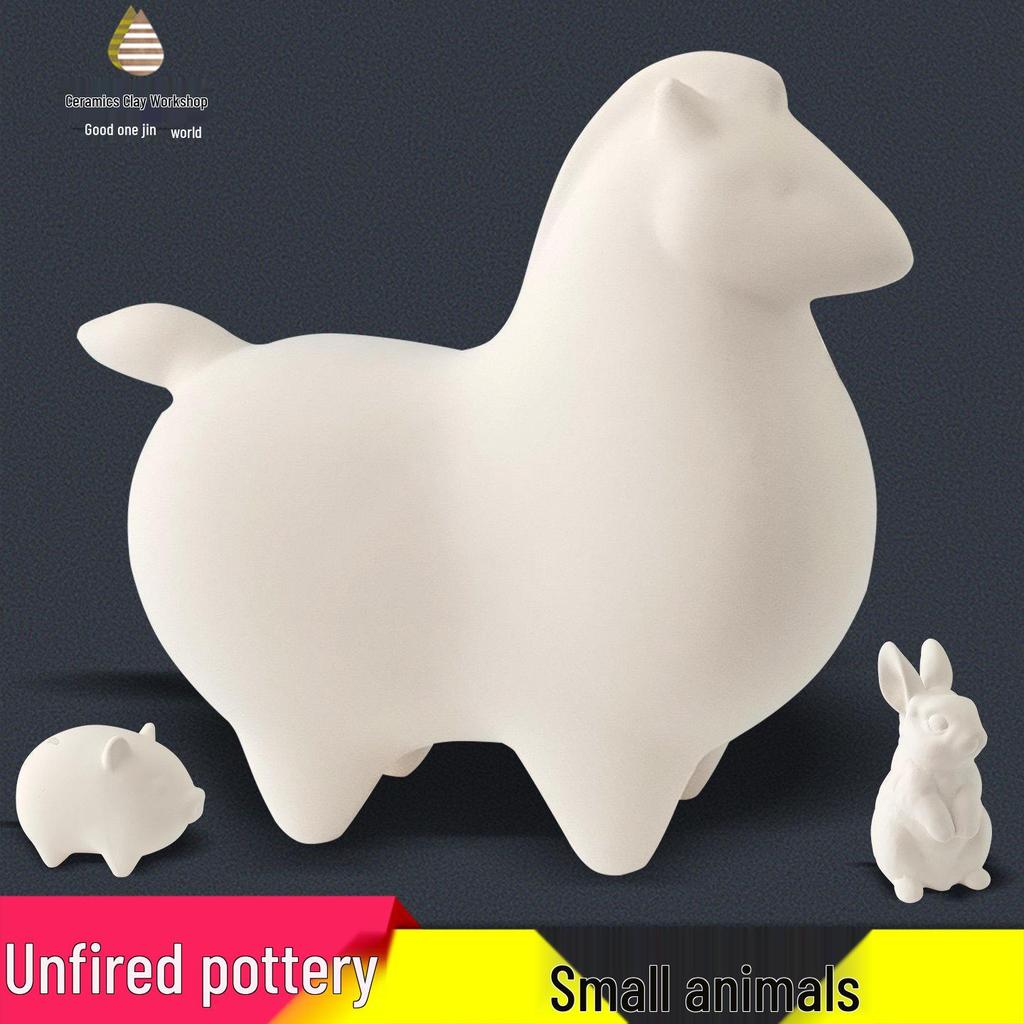 Year of the Horse Ceramic Slip Casting: Handmade Unglazed Zodiac Pottery for Children, Featuring Rabbit, Piglet, and Pony