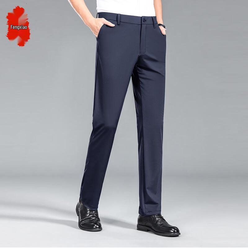 FENGXIAO 2026 Men's Mid-Waist Loose Straight Business Casual Pants
