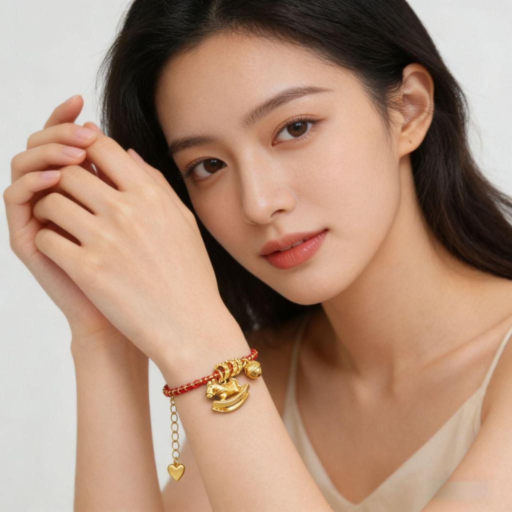 Luxury Red String Gold Horse Zodiac Bracelet - Elegant and Versatile Design