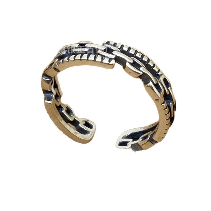 S925 Sterling Silver Distressed Twist Chain Hollow Adjustable Women's Ring