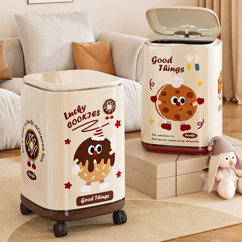 Wheeled Double Barrel Cartoon Trash Can with Lid for Living Room & Bedroom