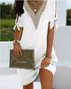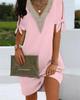 Indulge in elegance with this women's dress featuring a sophisticated lace collar and charming bowknot detail. Designed with split cuffs, the dress combines classic European and American styles. Crafted from high-quality polyester, it offers a comfortable and flattering fit, making it a perfect choice for both casual outings and formal events. The solid color design enhances its versatility, allowing you to accessorize effortlessly.