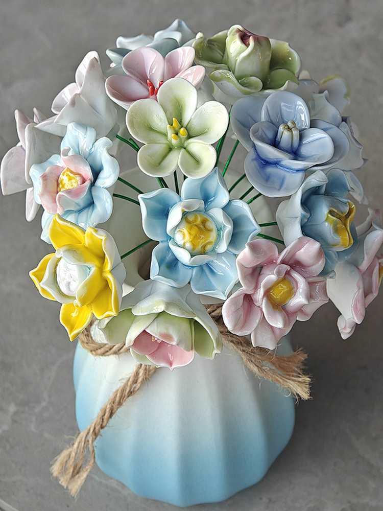 Handmade Ceramic Bouquet: Purple-Gold Lotus, Lily, Gardenia, Rose