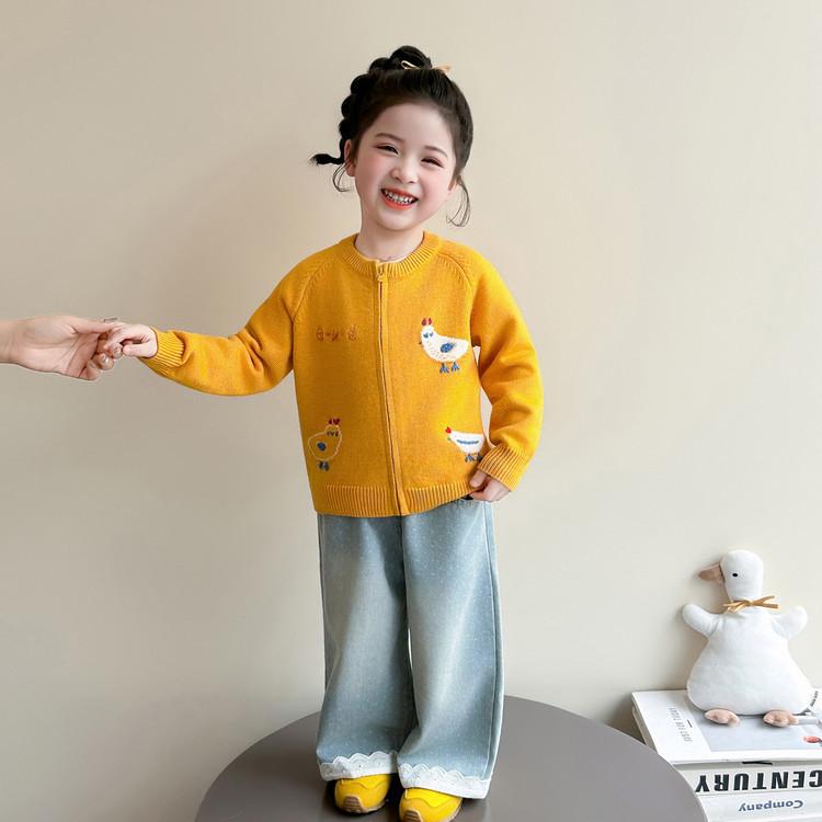 2026 Spring Korean Style Little Girls' Chicken Knit Cardigan - Stylish Cartoon Sweater
