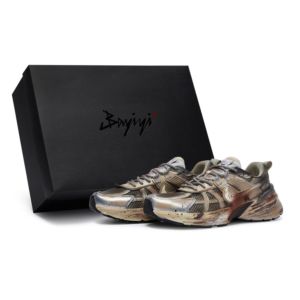 Nike V2K Run Cushioning Slip Resistant Low top Casual Running Shoes Unisex Rusty Red Gray Yellow FD0736-100(Team80-S-BOX)