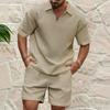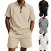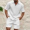 Men's Small Checkered Lapel Polo Shirt Short-sleeved Shorts Casual Sports Suit