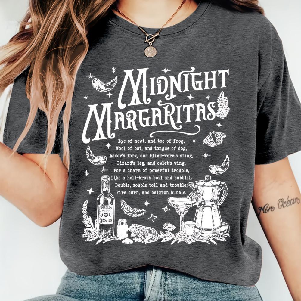 WomenS VintageInspired Midnight Margaritas Graphic TShirt Soft Stretchy Round Neck Short Sleeve Tee with Whimsical Drink