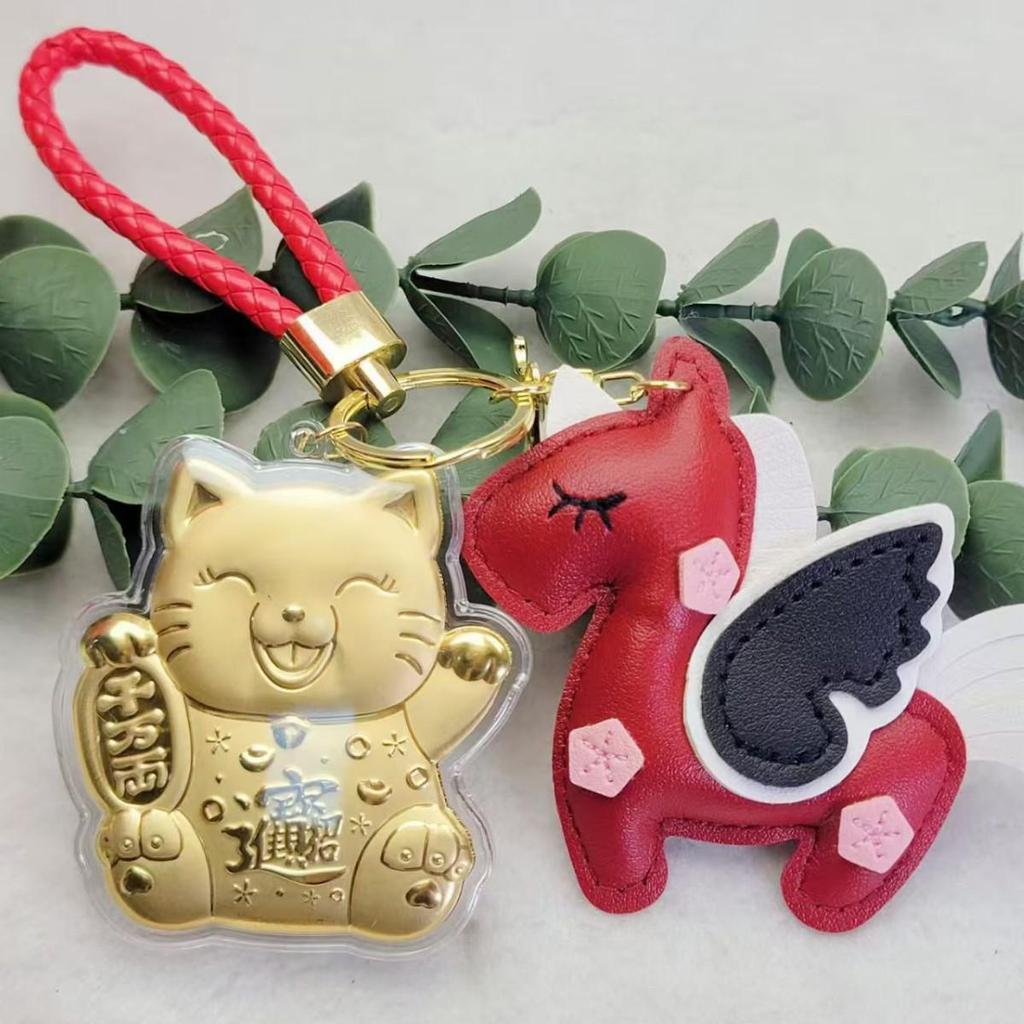 Golden Lucky Cat Year of the Horse Keychain - Ideal Company Gift for Client Relations and Event Promotions